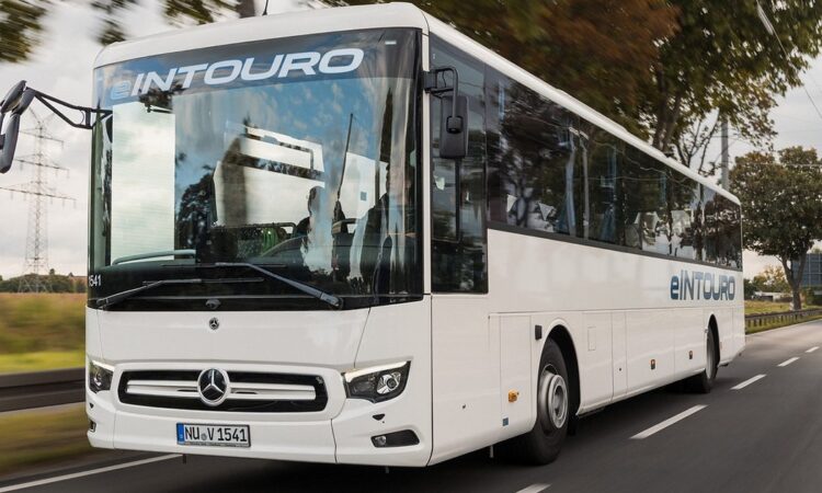 Der Mercedes‑Benz eIntouro basiert auf dem bekannten, dieselgetriebenen Hochbodenbus Mercedes‑Benz Intouro, verfügt aber über einen batterieelektrischen Antrieb. Damit ermöglicht Daimler Buses die Umstellung auf Elektromobilität nun erstmals auch für die klassischen Überlandlinien, Schulbusfahrten und kleinere Reisen. Neben dem eIntouro mit 12,18 Meter Länge wird es auch den eIntouro M mit 13,09 Meter Länge geben. Damit lassen sich Bestuhlungsvarianten ab 50 bis maximal 63 Sitzplätzen abdecken. Erstmals in einem europäischen Omnibus lassen sich im eIntouro Software‑Updates „Over the air“ ohne Werkstattaufenthalt installieren.